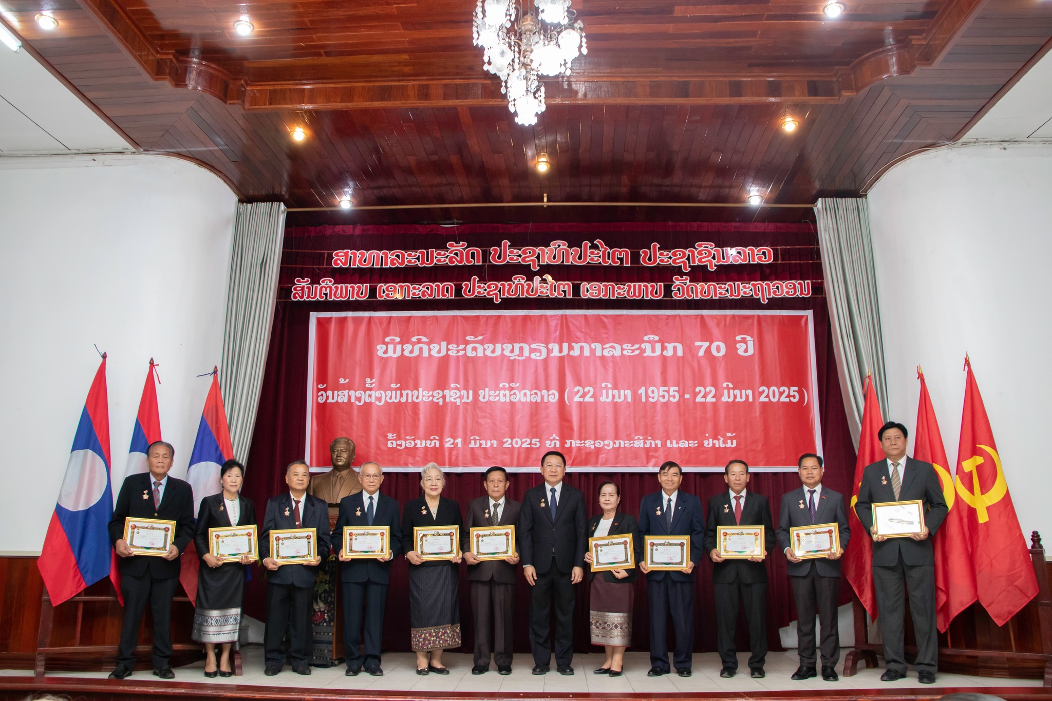 ພິທີປະດັບຫຼຽນກາລະນຶກ 70 ປີ ວັນສ້າງຕັ້ງພັກປະຊາຊົນ ປະຕິວັດລາວ ( 22 ມີນາ 1955 - 22 ມີນາ 2025 ) ໃຫ້ອະດີີດຄະນະປະຈຳພັກ, ບັນດາອະດີີດຄະນະບໍລິຫານງານພັກກະຊວງ, ອະດີດການນຳພັກ-ລັດ, ສະມາຊິກພັກ ແລະ ພະນັກງານປະຕິວັດອາວຸໂສບຳນານ ຂອງກະຊວງກະສິກຳ ແລະ ປ່າໄມ້.