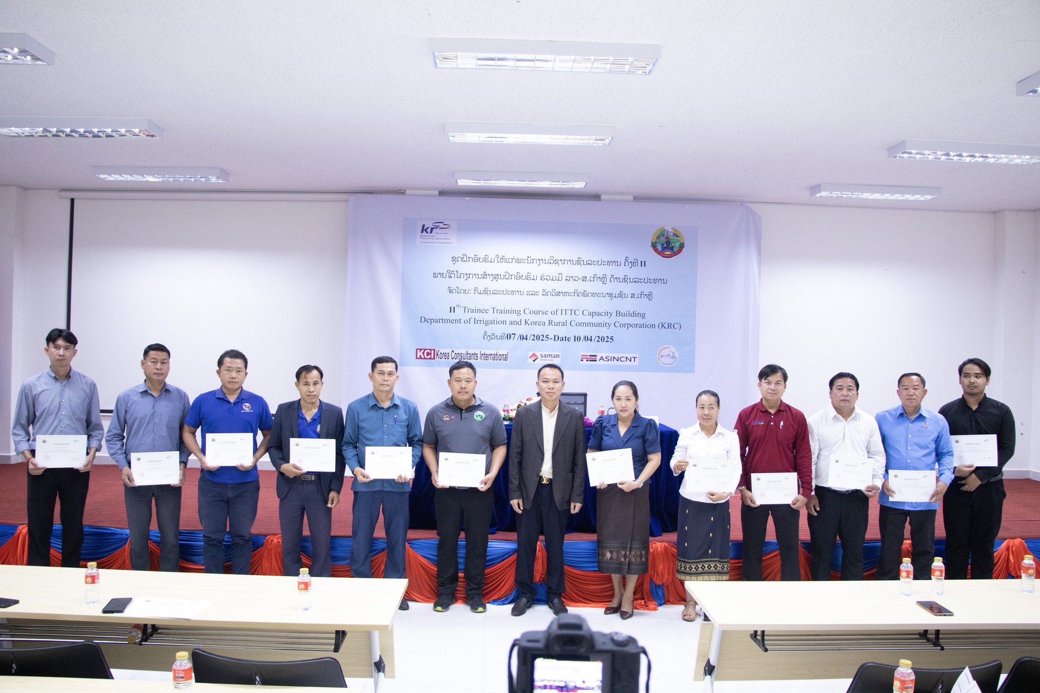 ປິດຊຸດຝຶກອົບຮົມໃຫ້ແກ່ພະນັກງານວິຊາການຂະແໜງ ຊົນລະປະທານ ຄັ້ງທີ 11 ພາຍໃຕ້ໂຄງການສ້າງຕັ້ງສູນຝຶກອົບຮົມ ຮ່ວມມືລາວ-ເກົາຫຼີ ດ້ານຊົນລະປະທານ ໂດຍການເປັນຂອງ ທ່ານ ປອ ສັດທາເທບ ທຳມະຈັກ ຮອງຫົວໜ້າກົມຊົນລະປະທານ, ຈຸດປະສົງຂອງການຝຶກອົບຮົມໃນຄັ້ງນິີ້ ແມ່ນສ້າງຄວາມເຂັ້ມແຂງ ແລະ ຂີດຄວາມສາມາດຂອງບຸກຄະລາກອນຂະແຫນງການຊົນລະປະທານໃນການນຳໃຊ້ເຄື່ອງມືທີ່ທັນສະໄໝເຂົ້າໃນວຽກງານສຳຫຼວດ, ອອກແບບຊົນລະປະທານ ແລະ ໃຫ້ພະນັກງານວິຊາການຂະແໜງການຊົນລະປະທານຂັ້ນສູນກາງ ແລະ ທ້ອງຖິ່ນ.