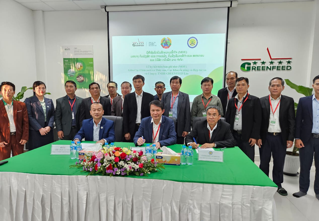 ພິທີເຊັນບົດບັນທຶກຄວາມເຂົ້າໃຈ (MOU) ລະຫວ່າງ ກົມລ້ຽງສັດ ແລະ ການປະມົງ, ກົມສົ່ງເສີມກະສິກຳ ແລະ ສະຫະກອນ ແລະ ບໍລິສັດ ກຣີນຟີດ ລາວ ຈຳກັດ