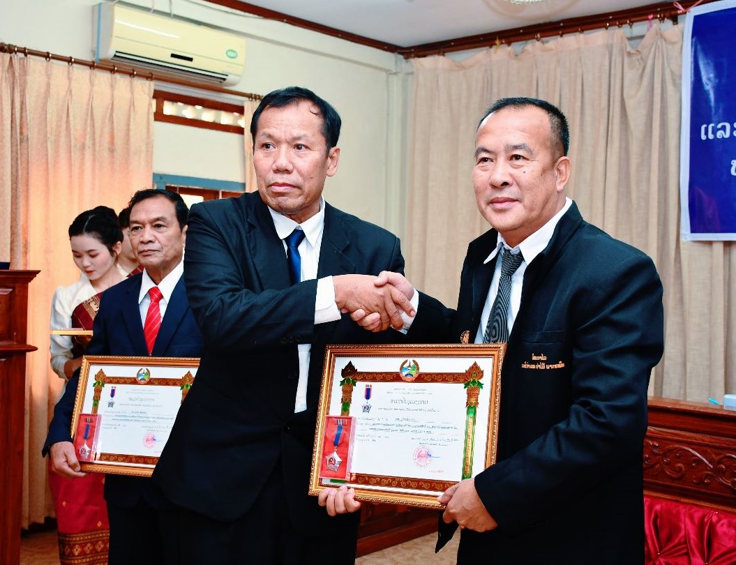 ໃນພິທີ ທ່ານ ບຸນຈັນ ເລັ່ງສະຫວັດ ຫົວໜ້າຫ້ອງການບໍລິຫານ ແລະ ແຜນການ ໄດ້ຕາງໜ້າໃຫ້ຄະນະຈັດຕັ້ງ ຂຶ້ນຜ່ານລັດຖະດຳລັດຂອງປະທານປະເທດ ສະບັບເລກທີ 140/ປປທ, ລົງວັນທີ 14 ກັນຍາ 2022 ວ່າດ້ວຍການປະດັບຫຼຽນໄຊແຮງງານ, ດຳລັດຂອງນາຍົກລັດຖະມົນຕີສະບັບເລກທີ 349/ນຍ, ລົງວັນທີ 14 ກັນຍາ 2022 ວ່າດ້ວຍການຍ້ອງຍໍກົມກອງ ແລະ ບຸກຄົນດີເດັ່ນ ທີ່ມີຜົນງານໃນການປະກອບສ່ວນເຫື່ອແຮງ, ສະຕິປັນຍາ ເຂົ້າໃນບັ້ນຂະບວນການແຂ່ງຂັນ-ຍ້ອງຍໍ ຮັກຊາດ ແລະ ພັດທະນາ ຕະຫຼອດໄລຍະ 5 ປີຜ່ານມາ (2016-2020), ເຊິ່ງປະກອບມີ ຫຼຽນໄຊແຮງງານ ຊັ້ນ I ມີ 5 ທ່ານ, ຫຼຽນໄຊແຮງງານ ຊັ້ນ II ມີ 7 ທ່ານ, ຫຼຽນໄຊແຮງງານ ຊັ້ນ III ມີ 6 ທ່ານ, ຫຼຽນກາແຮງງານ ມີ 9 ທ່ານ, ໃບຍ້ອງຍໍຂັ້ນລັດຖະບານ ມີ 34 ທ່ານ, ໃບຍ້ອງຍໍຂັ້ນກະຊວງກະສິກໍາ ແລະ ປ່າໄມ້ ມີ 20 ທ່ານ, ໃບຊົມເຊີຍຂັ້ນກະຊວງ ມີ 6 ທ່ານ, ນອກນີ້ຍັງໄດ້ມອບໃບຍ້ອງຍໍ ແລະ ໃບຊົມເຊີຍ ຜົນງານປະຈໍາປີ 2021 ໃຫ້ແກ່ຜູ້ທີ່ຜົນງານໃນການປະຕິບັດຂໍ້ແຂ່ງຂັນ 3 ເນື້ອໃນ 4 ຄາດໝາຍ ພາຍໃຕ້ຄໍາຂວັນ ຕັ້ງໜ້າພັດທະນາຫຼັກສູດ ການຮຽນ-ການສອນ, ສອນດີ-ສອນເກັ່ງ, ຮຽນດີຮຽນເກັ່ງ ແລະ ມີວິໄນ, ເຊິ່ງປະກອບມີ ໃບຍ້ອງຍໍຂັ້ນກະຊວງ ມີ 37 ທ່ານ, ໃບຊົມເຊີຍຂັ້ນກະຊວງ ມີ 47 ທ່ານ, ຈາກນັ້ນ ພິທີກໍໄດ້ຈັດມອບໃຫ້ແຕ່ລະບຸກຄົນຢ່າງສົມກຽດ. ໂອກາດນີ້ ທ່ານ ປະລິນຍາເອກ ອຸໄທ ສຸກຂີ ໄດ້ສະແດງຄວາມຍ້ອງຍໍຊົມເຊີຍຕໍ່ຜົນງານທີ່ສາມາດຈັດຕັ້ງປະຕິບັດໄດ້ໃນໄລຍະຜ່ານມາ ແລະ ຈົ່ງພ້ອມກັນສືບຕໍ່ຈັດຕັ້ງປະຕິບັດບັນດາໜ້າວຽກທີ່ຍັງຄົງຄ້າງໃຫ້ສໍາເລັດຕາມຄາດໝາຍທີ່ກຳນົດໄວ້.
