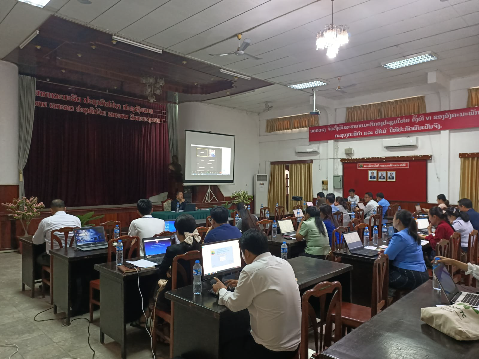 ໃນຕອນເຊົ້າເວລາ 08:30 ໂມງ ຂອງວັນທີ 15 ມິຖູນາ 2023 ທີ່ສະໂມສອນກະຊວງກະສິກຳ ແລະ ປ່າໄມ້ ໄດ້ຈັດຝຶກອົບຮົມການເກັບກຳ ແລະ ປ້ອນຂໍ້ມູນກ່ຽວກັບການຝຶກອົບຮົມ ແລະ ພັດທະນາບຸກຄະລາກອນ ເຂົ້າໃນລະບົບຖານຂໍ້ມູນຄຸ້ມຄອງບຸກຄະລາກອນ ຂອງກະຊວງກະສິກໍາ ແລະ ປ່າໄມ້ (HR+) ໂດຍເປັນປະທານຂອງ ທ່ານ ບຸນທະວີ ໄຊຍະເພັດ ຫົວໜ້າກົມຈັດຕັ້ງ ແລະ ພະນັກງານ , ມີນັກສຳມະນາກອນເຂົ້າຮ່ວມຈໍານວນທັງໝົດ 23 ທ່ານ, ຍິງ 13 ທ່ານ ໃນນີ້ຈາກບັນດາວິທະຍາໄລ 08 ທ່ານ, ຍິງ 06 ທ່ານ.
