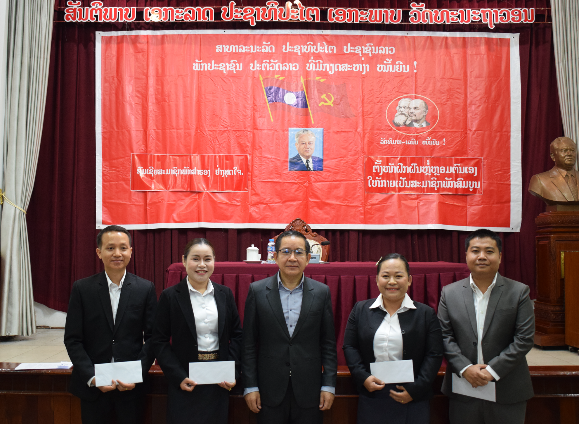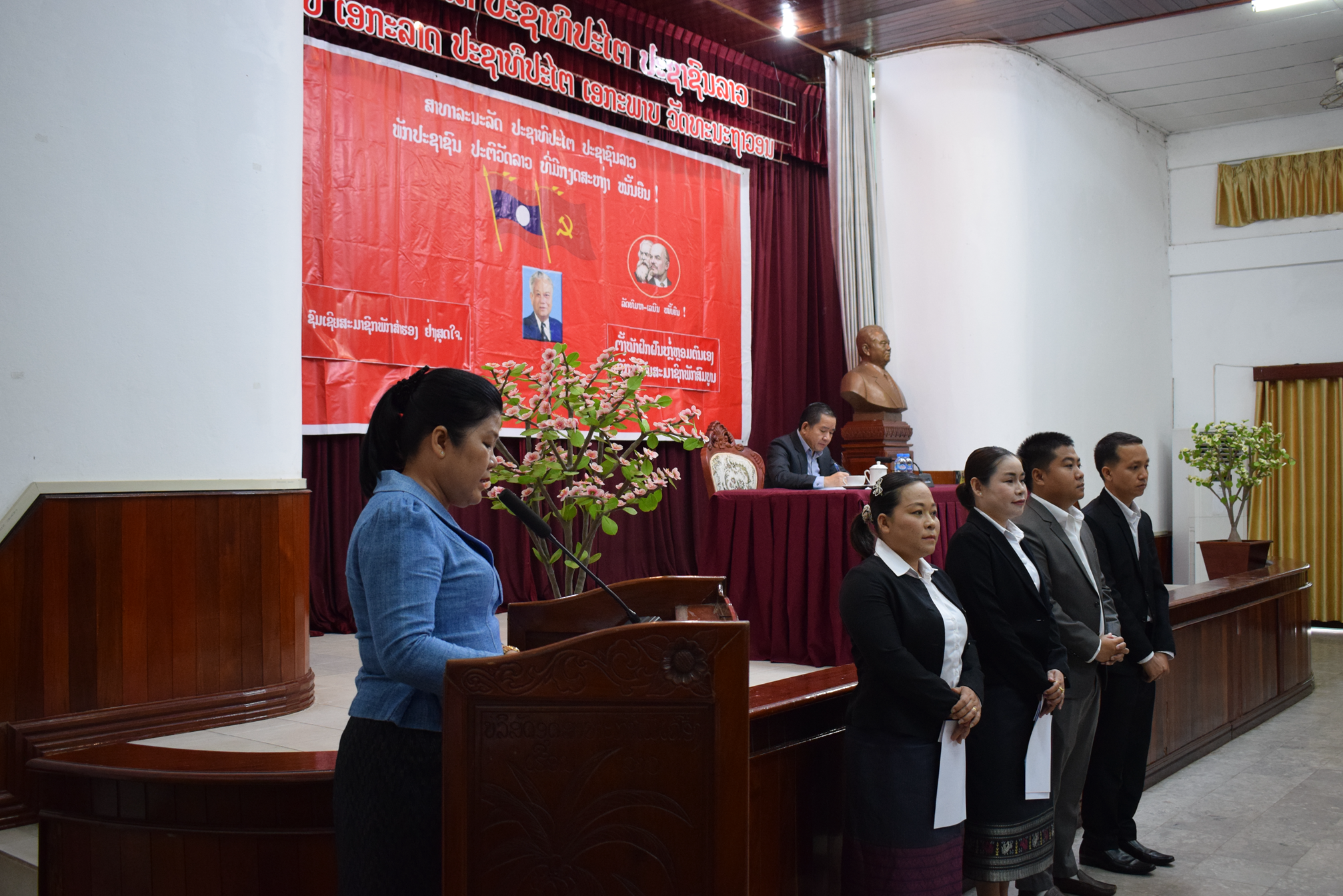 ພາຍຫຼັງທີ່ບັນດາມະຫາຊົນກ້າວໜ້າ ຂື້ນຜ່ານ ໃບສຳຫຼວດຕົນເອງ ແລະ ຜ່ານໃບຄຳຮ້ອງຂໍເຂົ້າເປັນສະມາຊິກພັກປະຊາຊົນປະຕິວັດລາວ ແລ້ວ ສະຫາຍ ອຸລາພອນ ພົງສະຫວັດ ຄະນະພັກຮາກຖານກົດຈັດຕັ້ງ ແລະ ພະນັກງານ, ຮອງຫົວໜ້າກົມຈັດຕັ້ງ ແລະ ພະນັກງານ ກໍ່ຂື້ນຜ່ານມະຕິຕົກລົງ ວ່າດ້ວຍການອະນຸມັດເອົາມະຫາຊົນກ້າວໜ້າເຂົ້າເປັນສະມາຊິກພັກປະຊາຊົນປະຕິວັດລາວ ແລະ ໃນຕອນທ້າຍ ສະຫາຍ ບຸນທະວີ ໄຊຍະເພັດ ກຳມະການຄະນະບໍລິຫານພັກກະຊວງ, ເລຂາຄະນະພັກຮາກຖານພັກ, ຫົວໜ້າກົມຈັດຕັ້ງ ແລະ ພະນັກງານ ໃຫ້ກຽດຂື້ນຈັບມືຮັບຮອງເອົາສະມາຊິກພັກສຳຮອງໃໝ່ ແລະ ມອບມະຕິຕົກລົງ ພ້ອມກັບໃຫ້ຄຳໂອວາດຕໍ່ສະມາຊິກພັກໃໝ່ທີ່ຈະຕ້ອງໄດ້ເພີ່ມຄວາມຮັບຜິດຊອບຕໍ່ໜ້າທີ່ການເມືອງຂອງຕົນໃຫ້ສູງຂຶ້ນກວ່າເກົ່າ, ພ້ອມທັງໄດ້ເນັ້ນໃຫ້ຄະນະໜ່ວຍພັກຕະຫຼອດຮອດສະມາຊິກພັກທຸກສະຫາຍພາຍໃນໜ່ວຍພັກ ພ້ອມກັນກໍ່ສ້າງສະມາຊິກພັກໃໝ່ໃຫ້ກາຍເປັນສະມາຊິກພັກສົມບູນທີ່ມີຄຸນນະພາບ, ມີຄວາມຈົງຮັກພັກດີຕໍ່ອຸດົມການຂອງພັກ ແລະ ເຮັດລ້ອນໜ້າທີ່ການເມືອງຂອງຕົນໃຫ້ມີຜົນສຳເລັດເປັນກ້າວໆ ໃນຕອນທ້າຍ ສະຫາຍ ນ. ຈັນສະໝອນ ຫຼວງສຸພົມ ຕາງໜ້າໃຫ້ສະມາຊິກພັກສຳຮອງໃໝ່ ຂື້ນຮັບຄຳໂອວາດ ແລະ ປະຕິຍານຕົນ