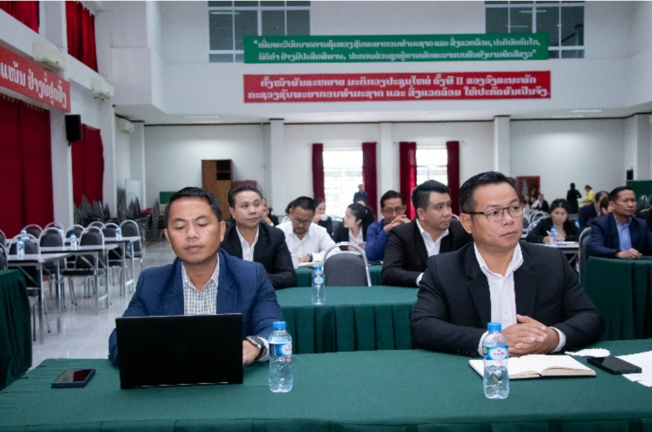 ໃນໂອກາດນີ້ ທ່ານ ລຽນໄຊ ບຸນມະນີວັນ ຫົວໜ້າສະຖາບັນຊັບພະຍາກອນທຳມະຊາດ ແລະ ສິ່ງແວດ ລ້ອມ (ຜູ້ເກົ່າ) ໄດ້ຂຶ້ນລາຍງານການໂຄງປະກອບກົງຈັກການຈັດຕັ້ງ, ບຸກຄະລາກອນ ແລະ ຈັດຕັ້ງປະຕິບັດວຽກງານໃນໄລຍະຜ່ານມາ (2021-2025) ທັງໃນສ່ວນຂອງວຽກງານທີ່ສຳເລັດ ແລະ ຄົງຄ້າງເພື່ອມີການ ສານຕໍ່ ວຽກງານຈາກຜູ້ທີ່ມາຮັບໜ້າທີໃໝ່ ຊຶ່ງສະຖາບັນຄົ້ນຄວ້າ ຊັບພະຍາກອນທຳມະຊາດ ແລະ ສິ່ງແວດລ້ອມ ປະກອບມີ 4 ພະແນກ ແລະ 1 ຫ້ອງທົດລອງ; ມີພະນັກງານວິຊາການທັງໝົດ 55, ຍິງ 23 ທ່ານ ປະກອບມີ ຄະນະສະຖາບັນ 3 ທ່ານ, ຍິງ 1 ທ່ານ. ໃນນັ້ນ, ມີຫົວໜ້າ 1 ທ່ານ, ຮອງຫົວໜ້າ 2 ທ່ານ, ຍິງ 1 ທ່ານ, ມີ ລະດັບວິຊາສະເພາະປະລິນຍາເອກ 1 ທ່ານ, ປະລິນຍາໂທ 28 ທ່ານ, ຍິງ 11 ທ່ານ, ປະລິນຍາຕີ 22 ທ່ານ, ຍິງ 9 ທ່ານ, ຊັ້ນສູງ 4 ທ່ານ. ໄລຍະຜ່ານມາໄດ້ນໍາພາ-ຊີ້ນາຈັດຕັ້ງປະຕິບັດວຽກງານວິຊາສະເພາະ ມີຜົນສໍາເລັດຫລາຍດ້ານເຊັ່ນ: ວຽກງານສະຖິຕິ ຊັບພະຍາກອນທໍາມະຊາດ ແລະ ສິ່ງແວດລ້ອມ; ວຽກງານຄົ້ນຄ້ວາການນໍາໃຊ້ ຊັບພະຍາກອນທໍາມະຊາດ ແລະ ສິ່ງແວດລ້ອມ; ວຽກງານແບບຈໍາລອງ ວຽກງານຕິດຕາມໝອກຄວັນ: ແລະ ວຽກງານຫ້ອງທົດລອງ.